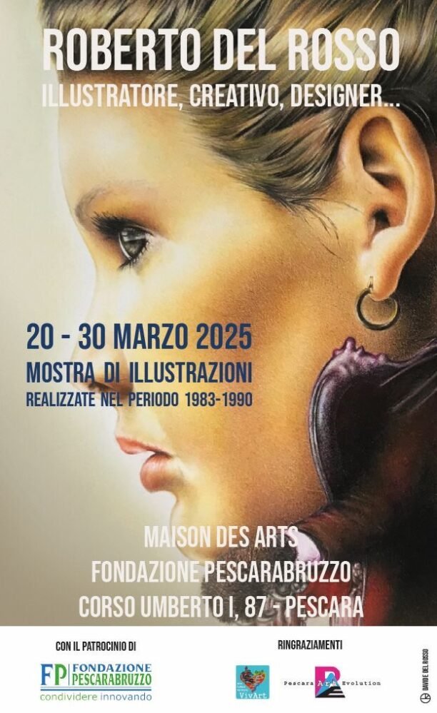 Dal 20 al 30 marzo, la Fondazione Pescarabruzzo-Maison des Arts-ospiterà una mostra dedicata al designer pescarese Roberto Del Rosso (1964-2017). L’esposizione presenterà una selezione di illustrazioni realizzate nel periodo compreso tra il 1983 e il 1990, caratterizzate da un ricco linguaggio visivo e da una profonda emotività.